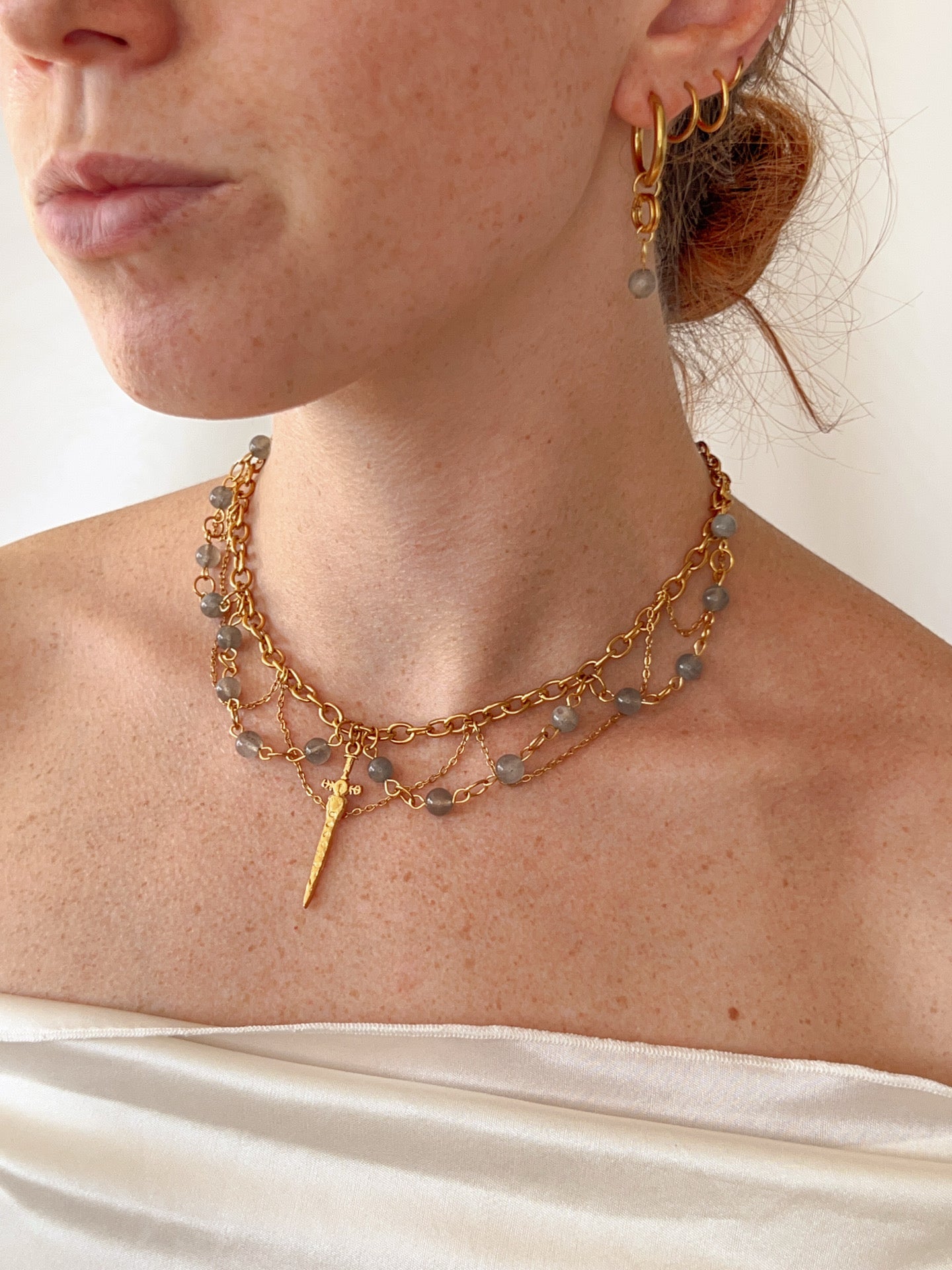 Les boucles d’oreilles Aelys en labradorite sont un bouclier contre les énergies négatives à porter quotidiennement. Toutes les boucles d’oreilles sont interchangeables, il est possible de sélectionner seulement les pendants (sans les créoles).