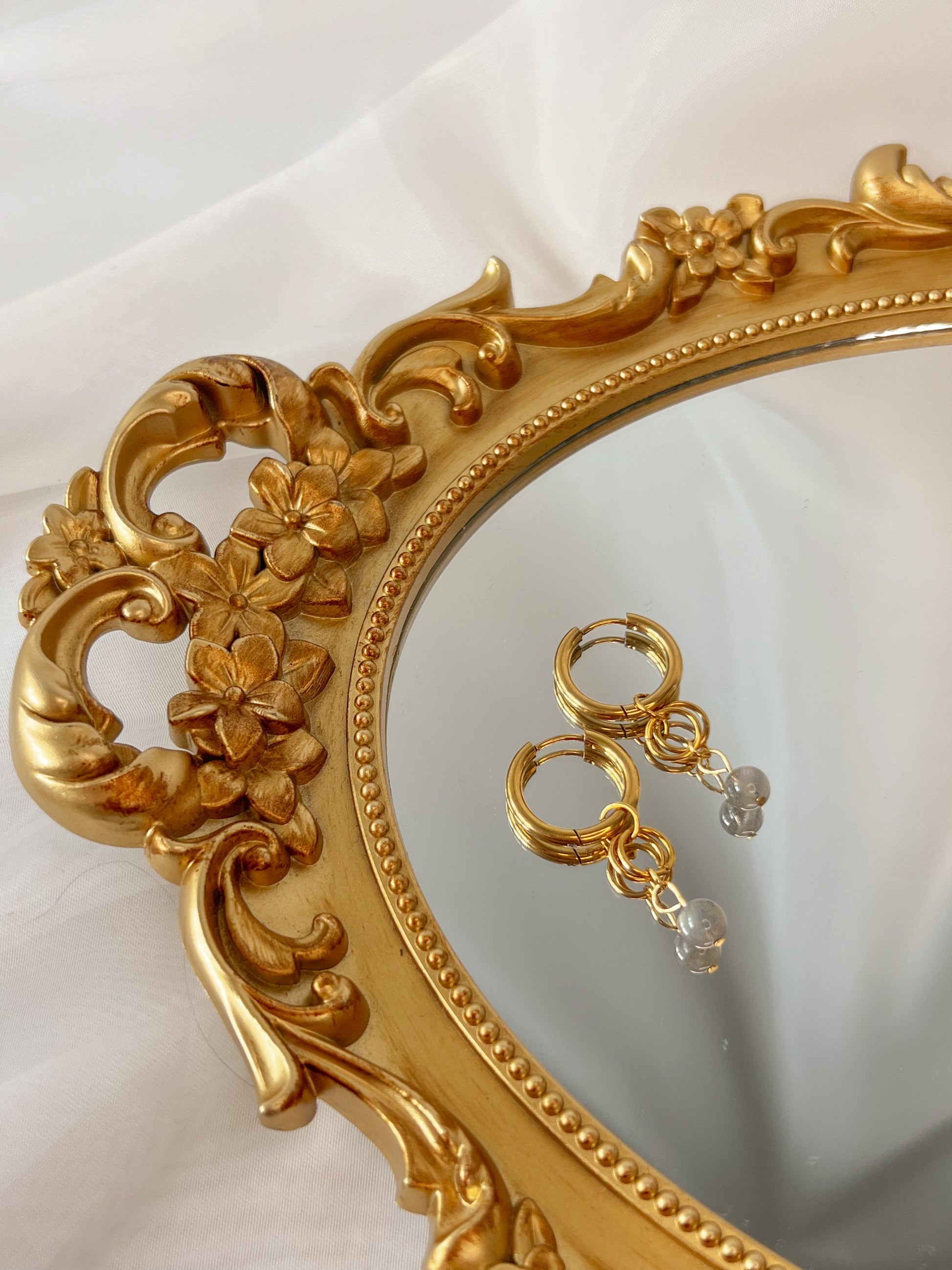 Ces boucles d’oreilles sont réalisées en acier inoxydable, les pierres étant uniques l’intensité ou le motif de celles-ci peut varier d’une perle à une autre.