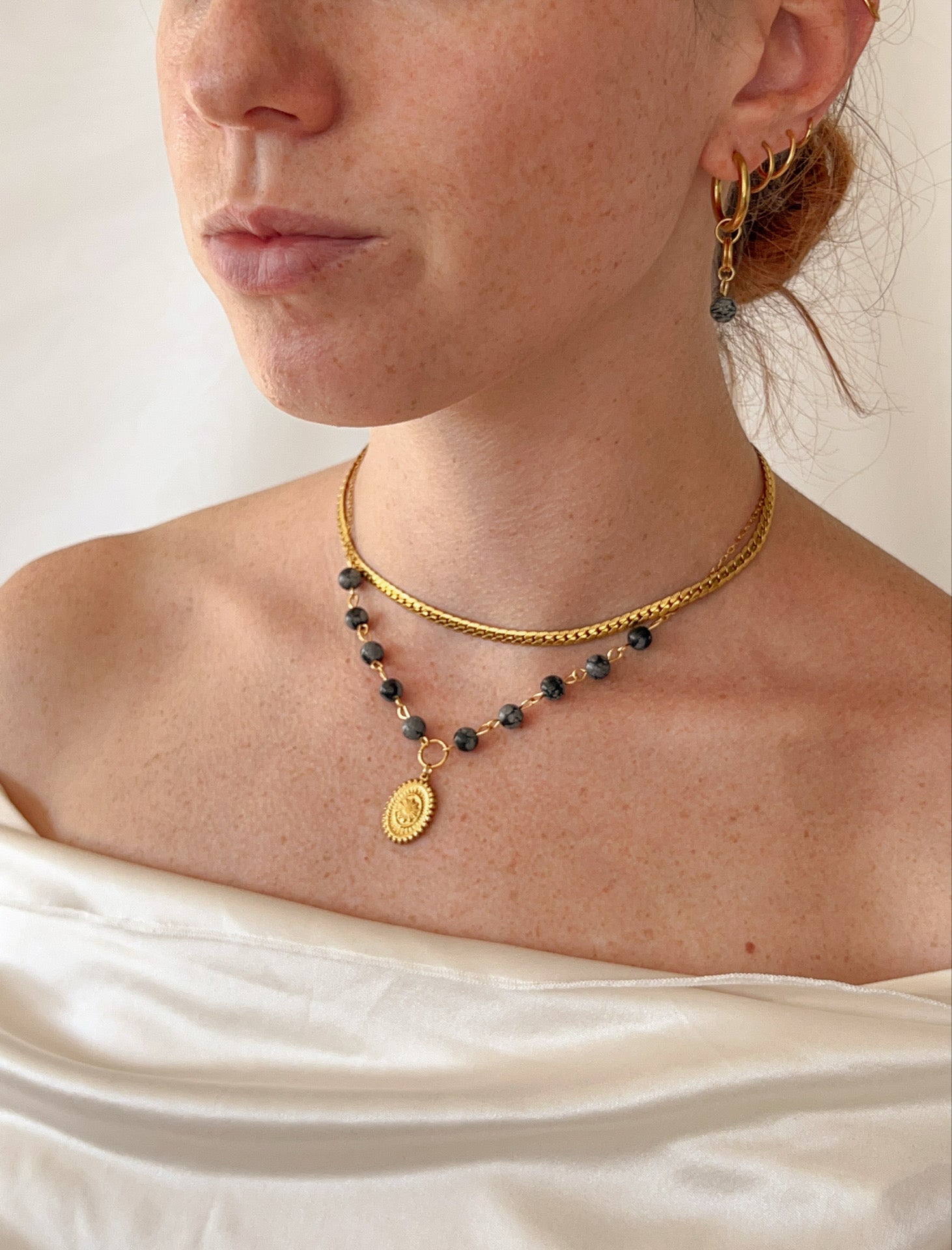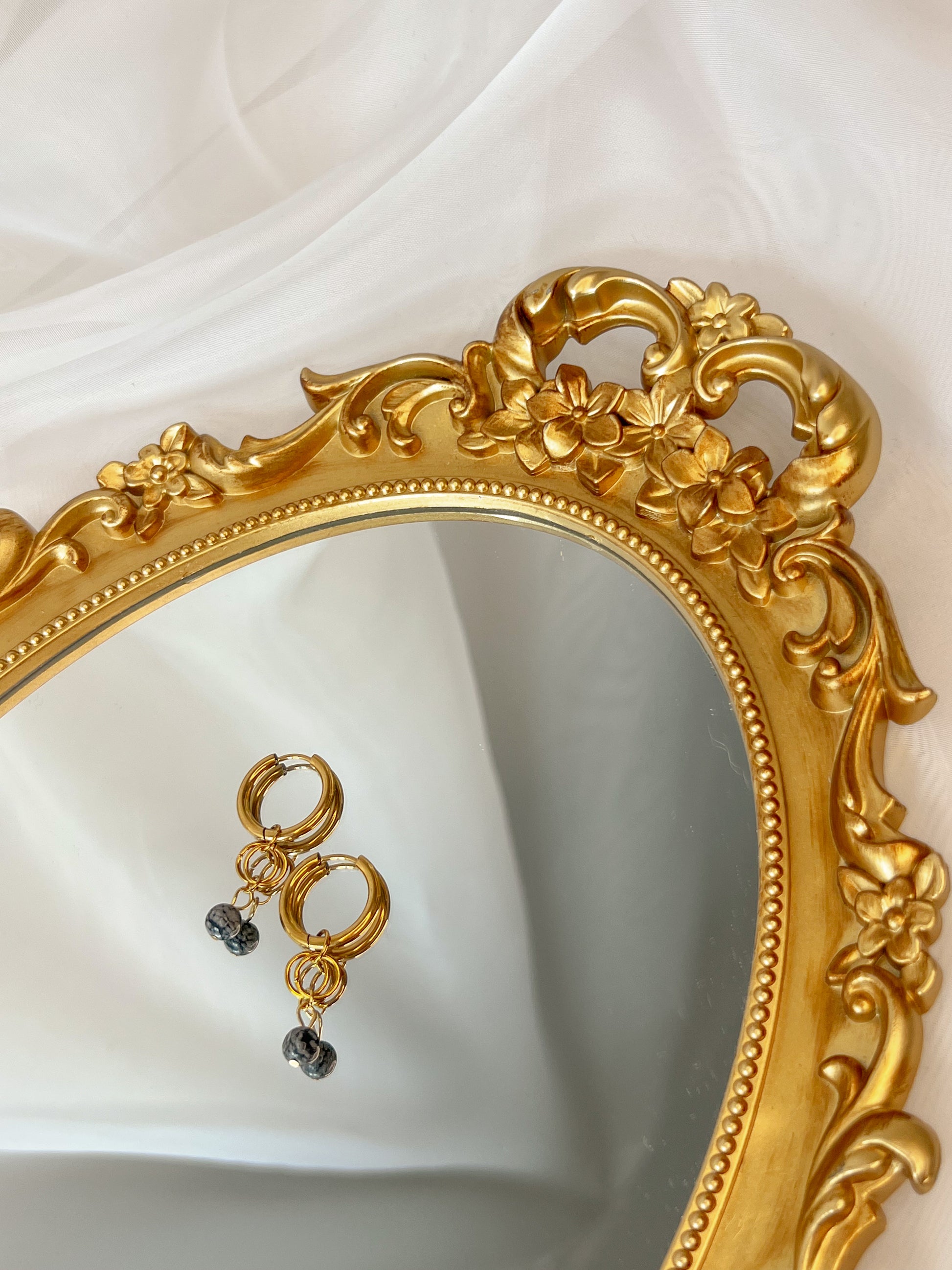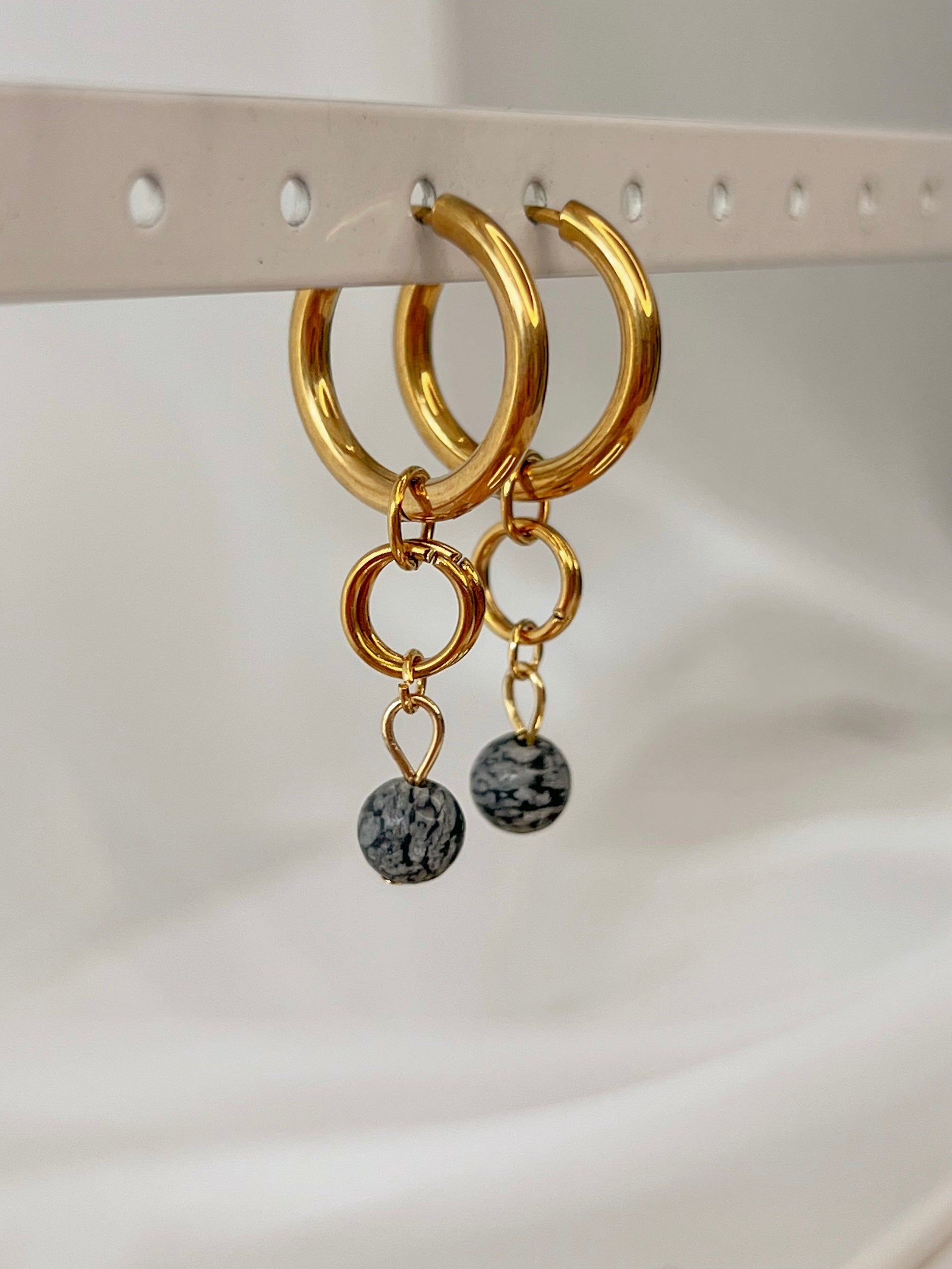 Les boucles d’oreilles Aelys en obsidienne neige sont une invitation à l’équilibre et au lâcher prise à porter quotidiennement. Toutes les boucles d’oreilles sont interchangeables, il est possible de sélectionner seulement les pendants (sans les créoles).