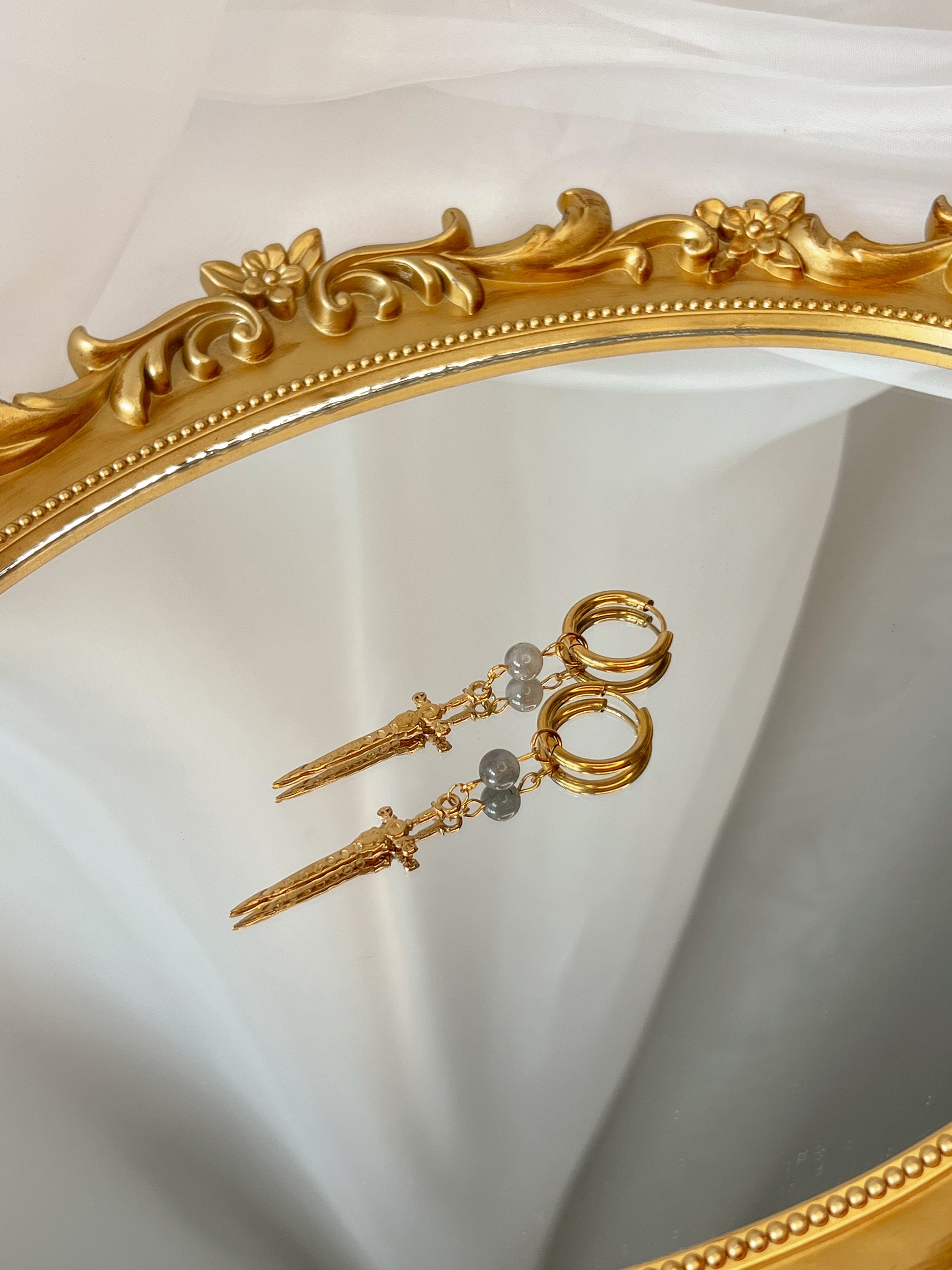 Les boucles d’oreilles Kaelia en labradorite sont un symbole de protection à porter quotidiennement. Toutes les boucles d’oreilles sont interchangeables, il est possible de sélectionner seulement les pendants (sans les créoles).