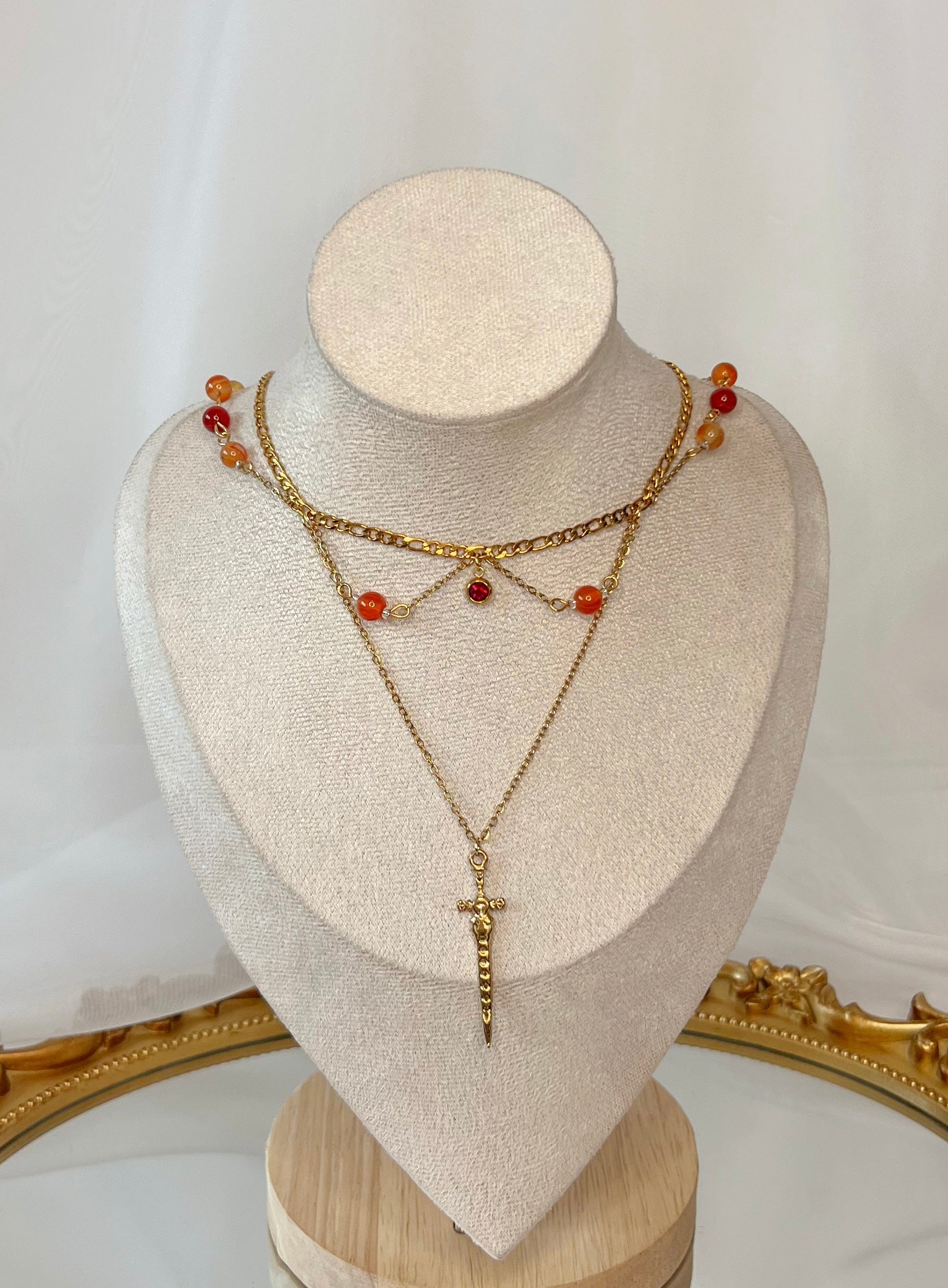 Inspiré par l’héroïne Aelin Galathynius, ce collier incarne vie et courage. Orné de perle de cornaline, il renforce la confiance en soi, amémoire la créativité et accroît la motivation. Portez-le pour révéler la forné qui sommeille en vous.