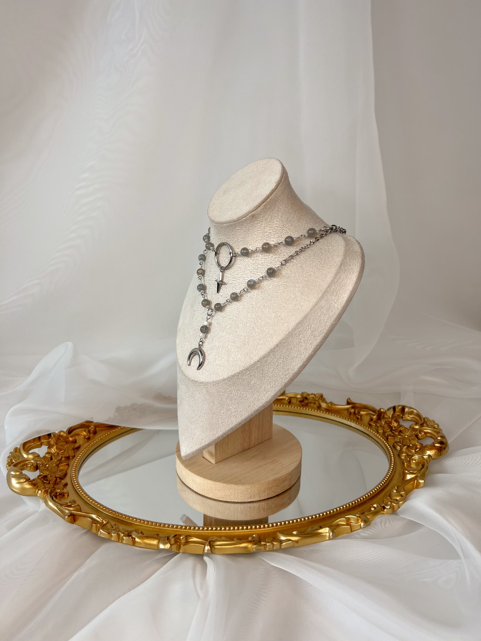 Le collier Hécate est une invitation à la renaissance. Orné de perles de labradorite, il agit comme un bouclier contre les énergies négatives tout en aidant à apaiser le stress et l’anxiété. Portez ce collier comme un symbole de protection et de force intérieure.